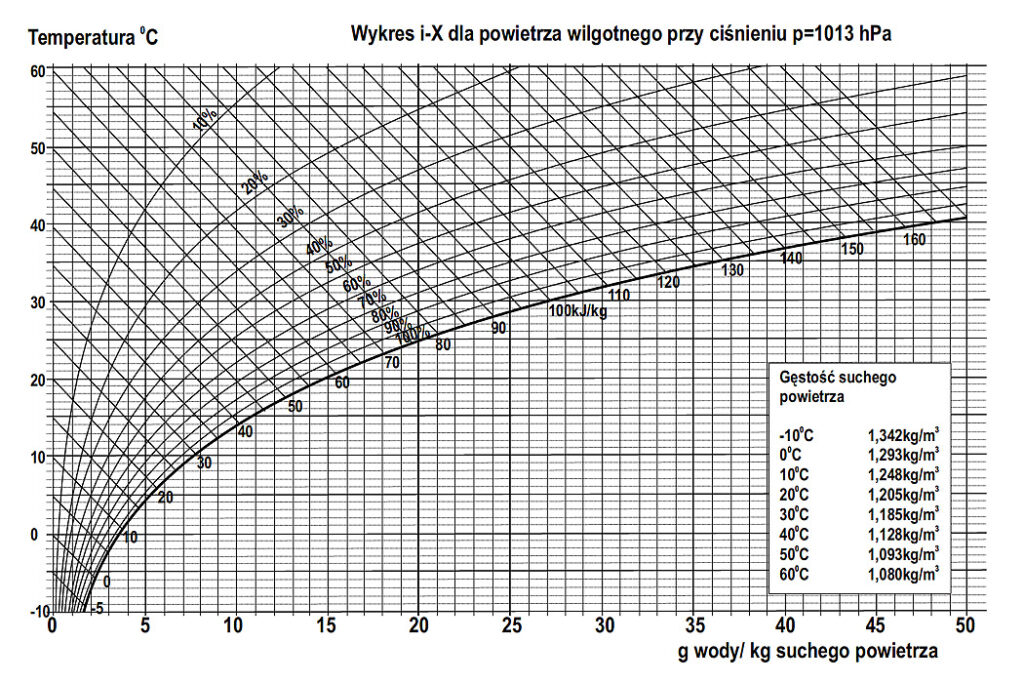 Z wykresu Moliera wynika, że im temperatura powietrza jest wyższa – tym może być w nim zawarte więcej wody. Dlatego osuszanie przez wietrzenie jest skuteczne wtedy, kiedy w pomieszczeniu osuszanym mamy ciepłe i wilgotne powietrze, a na zewnątrz budynku zimne i suche.